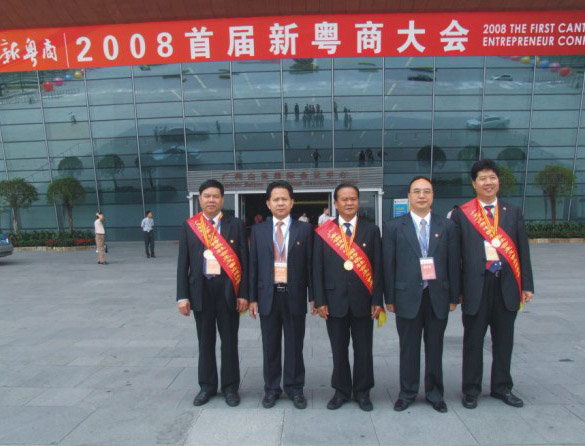 2008年5月27日上午,廣州白云國際會議中心冠蓋云集,2008年首屆新粵商大會在此隆重舉行。中共中央政治局委員、廣東省委書記汪洋等國家領導、廣東省委副書記、省長黃華華及省人大、省政府、省政協等領導出席了大會開幕式。廣東省知名企業家、全國各地的廣東商會代表、各省駐粵商會代表、港澳工商社團、五大洲粵籍實業家代表等1500多人出席會議。我司董事長朱日楊先生作為粵籍實業企業家也出席這次會議。